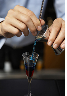 系统传授时尚鸡尾酒、花式调酒、中外 鸡尾酒、洋酒的分类识别、酒吧的工作流程、 服务标准、酒吧经营与管理、水果拼盘的制 作等知识。