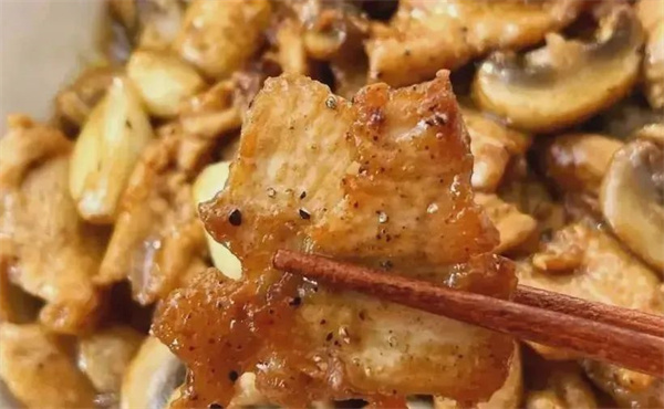 2、锅里倒油烧热,放入腌好的鸡胸肉,大火翻炒均匀,变色后盛出。锅里留底油,烧热后下蒜末炒香,倒入口蘑片翻炒一会儿,变软后加入生抽、蚝油、胡椒粉,倒入炒好的鸡胸肉,大火翻炒均匀即可出锅。
