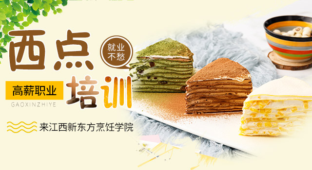 江西新东方烹饪学校,作为国内为餐饮行业培养具有欧洲标准的甜点 人才的烹饪学院,采用烘焙理实一体化多媒体教学,全面提升学生知 识技能与综合素质,培养学生不仅掌握市场前沿技术, 更懂经营,善管理。